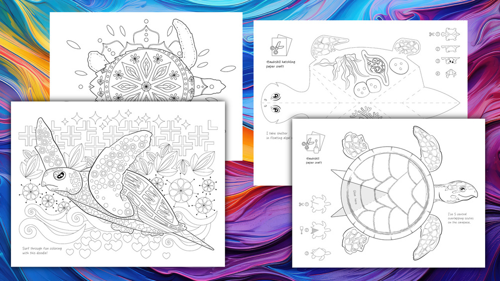 Learn more about the critically endangered Hawksbill Sea Turtle through 8 unique coloring pages, each featuring a different enchanting scene. From witness the magical moment when baby sea turtles emerge from their sandy nesting, to exploring a mysterious underwater cave where sea turtle encounters a wonderland of strange and vibrant corals and fish.